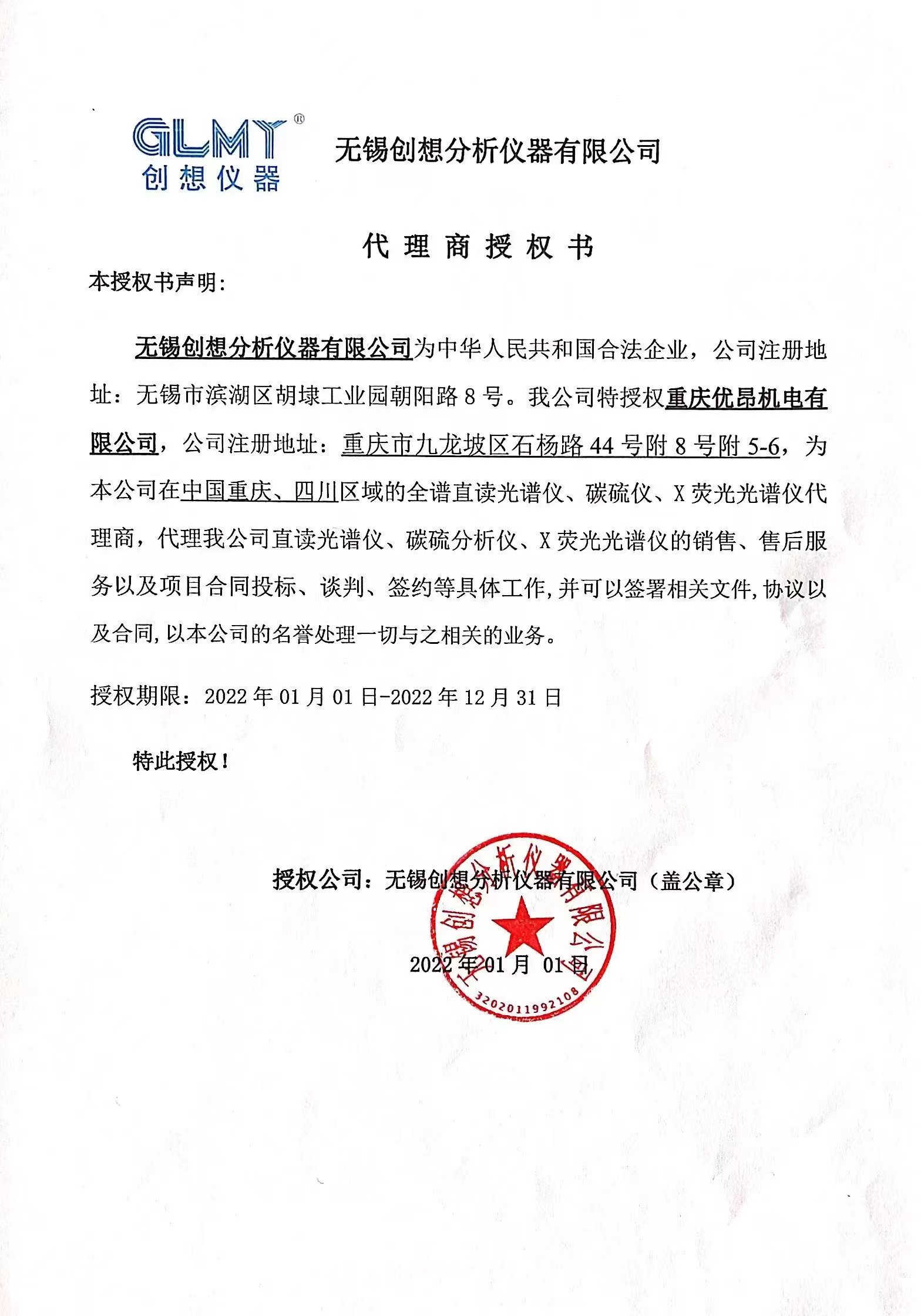 • 創(chuàng)想光譜儀2023年經(jīng)銷商授權(quán)書