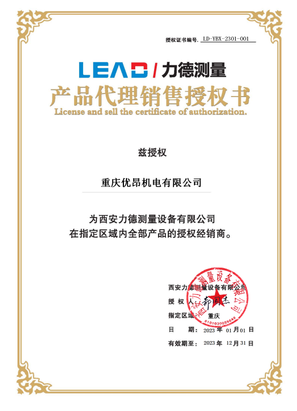• 力德三坐標(biāo)2023年經(jīng)銷商授權(quán)證書